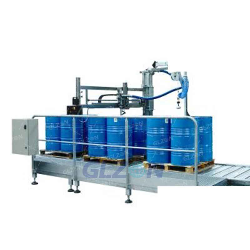 GZM-1000AUTO fully automatic machine for weighing and line filling of canisters, pails, drums and IBC on pallets. The robotic filler model is designed for high production and is highly automated. It also allows great flexibility in changing container types. It is suitable for filling canisters, pails, drums and IBC directly on pallets (containers from 20 liters to 1.500 liters).